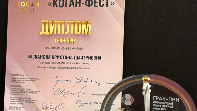 VI Международный конкурс скрипачей «КОГАН-ФЕСТ», проходивший в Ярославле, собрал множество одаренных молодых исполнителей, среди которых особенно выделилась Кристина Засканова, представляющая Мытищинскую детскую музыкальную школу. Она продемонстрировала виртуозное владение инструментом и глубокое понимание музыкального материала, что принесло ей заслуженное Гран-при в номинации «Юные скрипачи».