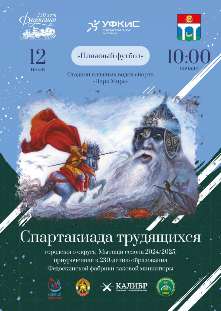 Сезон 2024/2025 Спартакиады приурочен к 230-летию образования Федоскинской фабрики лаковой миниатюры. Ждем команды трудовых коллективов и их болельщиков.