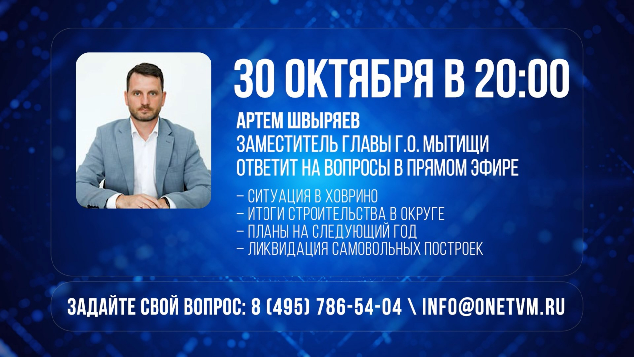 Заместитель главы А. Швыряев ответит на вопросы мытищинцев в прямом эфире