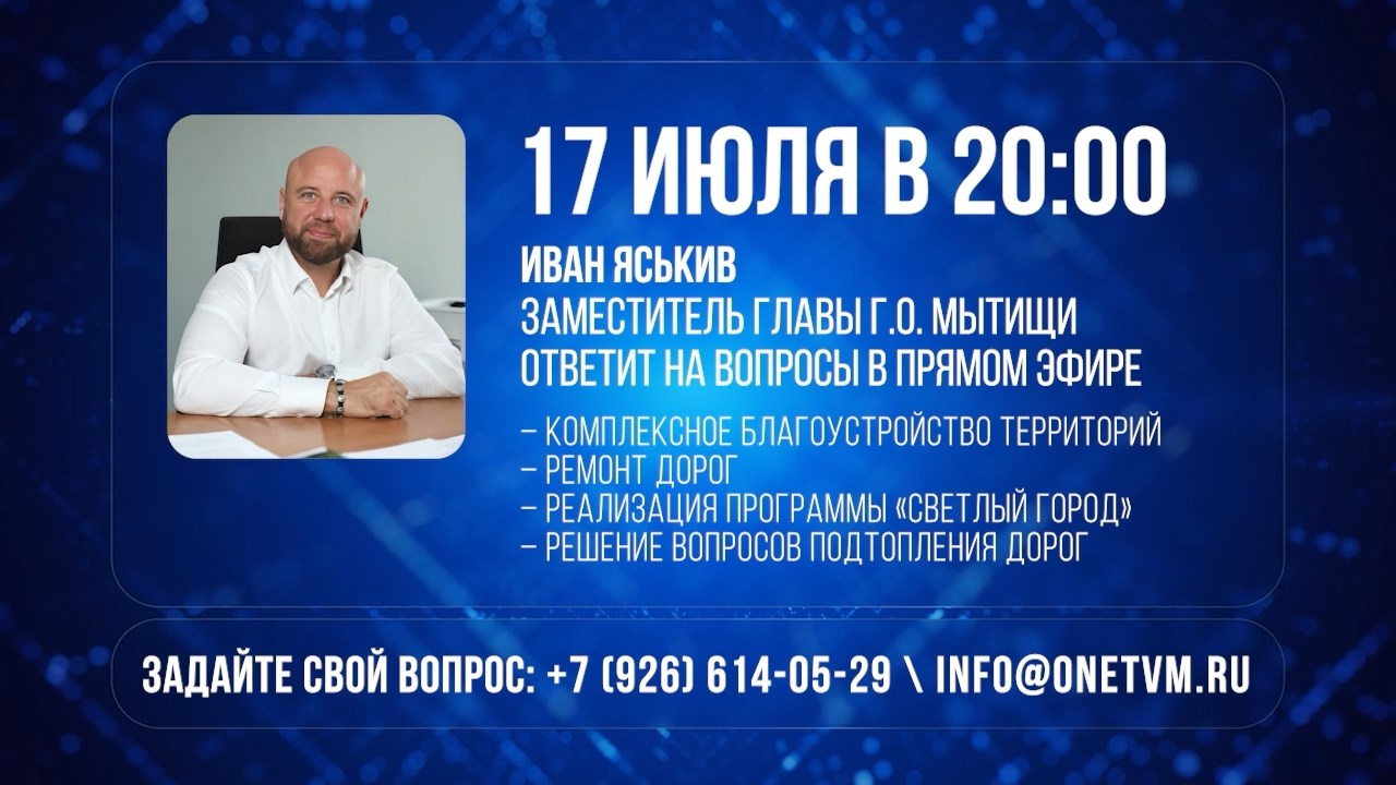 Заместитель главы г.о. Мытищи Иван Яськив ответит на вопросы в прямом эфире