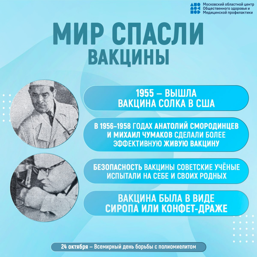 До изобретения вакцин во многих странах происходили эпидемии полиомиелита, наводившие ужас на родителей. Дети, пережившие паралитическую форму, оставались с тяжелейшими последствиями на всю жизнь: конечности были обездвижены, возникали деформации суставов и костей, паралич мышц живота и спины, дыхательная недостаточность.