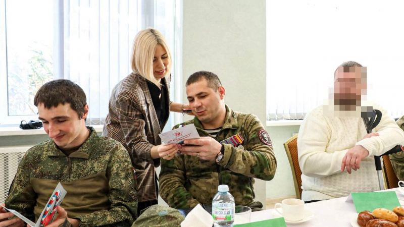 Школьники подготовили для ветеранов трогательные открытки, сделанные собственными руками. А семьи СВО передали сборник стихов, в который вошли произведения жён, мам и самих бойцов.