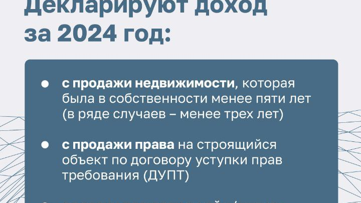 Напомним, при продаже недвижимости в 2024 году действуют ещё старые правила, а декларацию следует подать до 30 апреля 2025 года. Это крайний срок! В карточках рассказываем подробно, как подать декларацию, в каких случаях необходимо отчитаться о доходах и когда надо оплатить налог